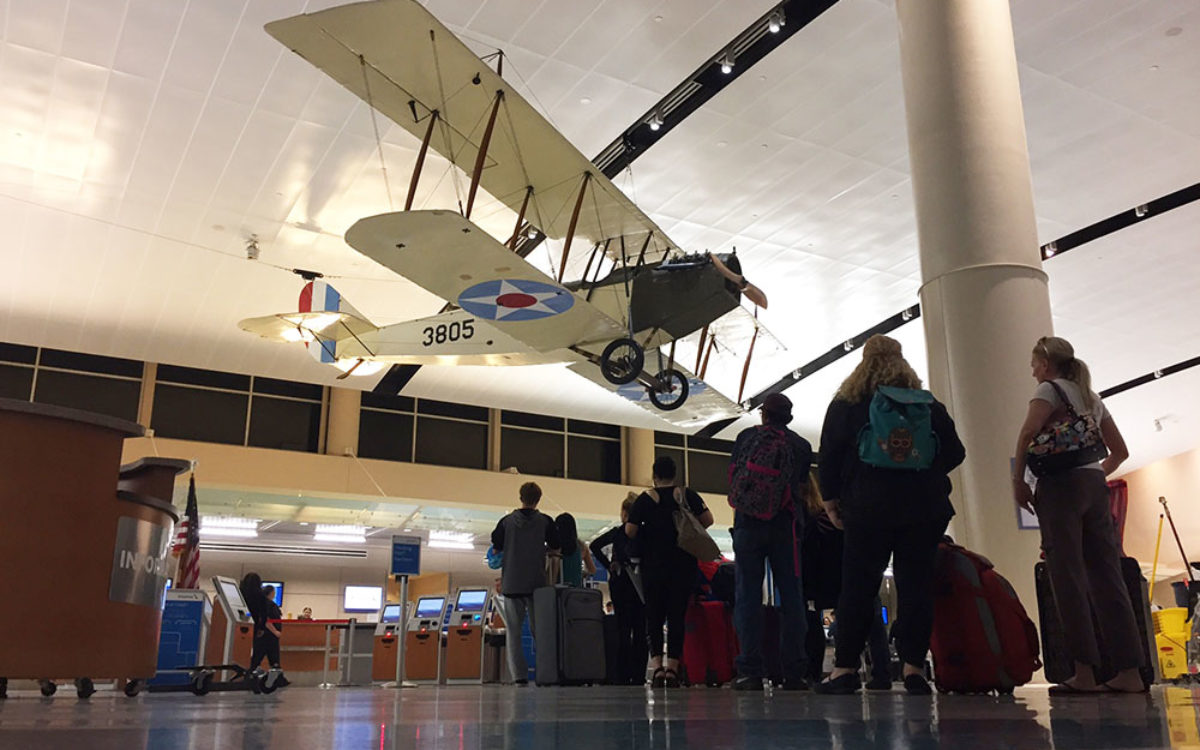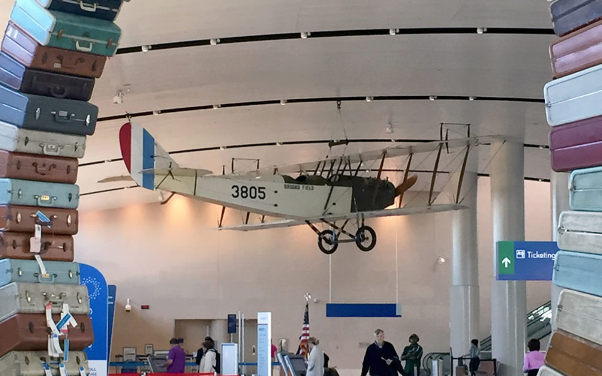 If you visit the visit Terminal B at the San Antonio International Airport, look to the ceiling and you will see The “Jenny” - a 1918 Curtiss JN-4D biplane that provides passengers a glimpse into Military City’s rich aviation history.